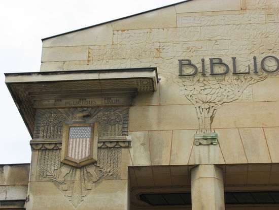 Höhepunkt des Art-Deco-Rundganges ist jedoch die Bibliothèque Carnegie, benannt nach dem Milliardär und Philanthropen Andrew Carnegie - einem der grosszügigen US-amerikanischen Finanzierer der reconstruction.
