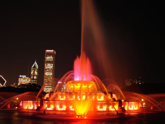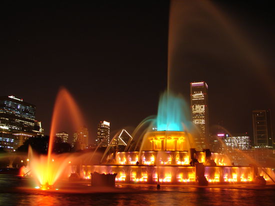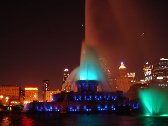 Den Abend wollten wir heute am Buckingham Fountain verbringen. Abends wird er in den verschiedensten Farben angestrahlt. Zum Glück war an diesem Abend nicht viel los und so konnten wir viele schöne Fotos von dem Brunnen in den verschiedensten Farben schiessen.