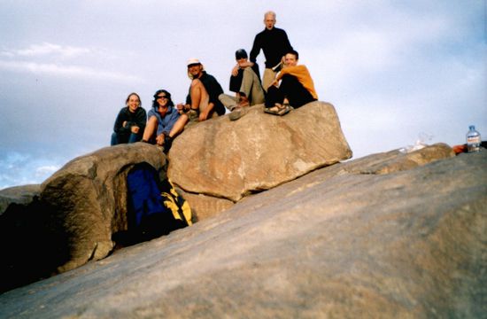 Oben angekommen ist es schon ganz schön kühl, obwohl die Sonne scheint und man es im Tal kaum aushalten kann. Auf dem Gipfel lernen wir zwei recht süße Mädels kennen, die per Taxi und mit Backpack aus Israel rübergekommen sind. Nach Einbruch der Dunkelheit flüchten sie jedoch der Kälte halber zurück ins Tal, genau wie auch alle anderen Touristen, und lassen uns vier zurück.