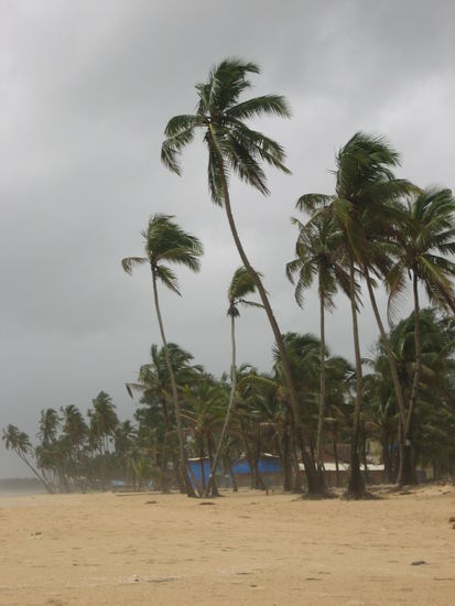 Um 12:30 mittags am naechsten tag sind wir dann endlich in Goa angekommen- und die sonne hat geschienen und es standen saemtliche Palmen herum. Auf abenteuerliche Weise wurde dann das Gepack von 25 Leuten auf dem Dach eines Jeeps festgebunden...Die naechste grosse ueberraschung war dann das Camp, direkt am Strand, neben Strandbars und sogar mit Swimmingpool! Whow..unbelievable!!Die Anlage ist hier echt schoen und es kommt ein bisschen Urlaubsfeeling, wegen des Monsuns und der Stroemungen sollte man jedoch nicht ins MEer.
