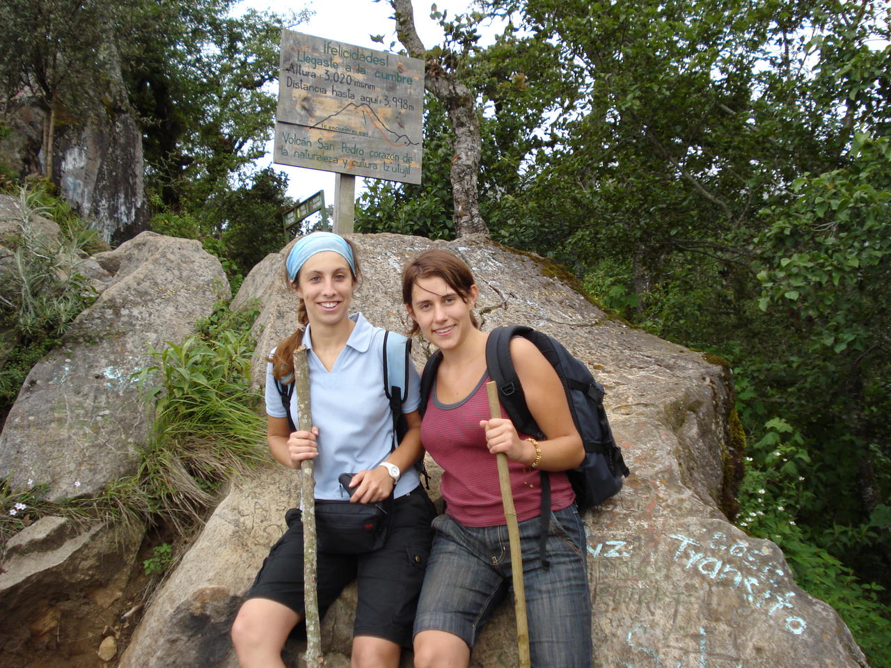 Mein 3. Wochenende verbrachte ich mit Laura am Atitlan See. Dieser liegt auf rund 1500 m über dem Meeresspiegel. Ein tiefblauer See umrahmt von 3 mächtigen Vulkanen. Wir wurden am Freitag um 13.00 Uhr von einem Shuttle Bus abgeholt und in 3 Stunden nach Panajachel gefahren. Normalerweise dauert die Fahrt nur 2 Stunden, jedoch standen wir für 1 Stunde im Stau! In Panajachel angekommen, suchten wir den Hafen um per Boot nach San Pedro zu gelangen. San Pedro ist wie Panajachel sehr touristisch jedoch hat es eine angenehme Atmosphäre und sehr preiswerte Unterkünfte. San Pedro hat sich zu einer Drogenhochburg entwickelt da viele Traveller sich dort niedergelassen hatten. Die Bewohner waren davon nicht gerade angetan, da die meisten einer evangelischen Sekte, welche ein alkohol- und drogenfreies Leben propagieren, angehören. Nach anfänglichen Reibereien haben sie nun ein, für beide Seiten erträgliches, Mittelmass gefunden. Mittlerweile profitieren auch die Einheimischen von dem Tourismus. Unser Ziel waren jedoch nicht die Drogen, sondern der Vulkan San Pedro welcher, gem. Reiseführer, in 5 Stunden zu besteigen war. Nach unserer Ankunft suchten wir uns erst einmal einen Führer und buchten für Q 125.- pro Person für den nächsten Tag eine Tour auf den 3020 m hohen Vulkan. Dann haben wir uns eine Unterkunft gesucht und fanden das "Hospedaje Buena Nueva". Pro Nacht und Person kostete das 25.- Quezales, ca. CHF 4.- inkl. eigener Dusche. Nachdem wir uns eingerichtet hatten, wollten wir essen gehen, da bemerkte ich, dass ich meinen Geldbeutel verloren hatte. War zwar blöde aber nicht weiter schlimm, da er fast leer war. Von da an war meine Hosentasche mein neuer Geldbeutel. Für Q 35.- assen wir in Nicks Place ein hervorragendes Thaicurry. War gut wieder mal was anderes zu essen. Am nächsten Tag standen wir um 5 Uhr auf und wurden um 6 Uhr von Juan abgeholt. Nachdem wir uns in einem Restaurant Sandwiches und Bananen fuer die Wanderung gekauft hatten, gings zu Fuss zum Eingang des Nationalparks wo wir bereits von unserem Führer, Juan 2, erwartet wurden. Mit einem grossen Messer ausgeruestet fuehrte er uns einen steilen und schmalen Weg durch Kaffeeplantagen, durch den Wald und durch steil liegende Maisfelder den Berg hinauf. Nach ca. 1 1/2 Stunden konnten wir uns bei einer kleinen Pause mit herrlicher Aussicht auf den Atitlan See ausruhen und stärken. Nach kurzer Zeit gings durch den dicht bewachsenen Wald weiter. Je höher wir stiegen, desto feuchter wurde das Klima da die Vulkanspitze meistens von dichtem Bergnebel umhüllt ist. Nach ca. 3 1/2 Stunden sind wir auf der Spitze angekommen und konnten zuerst gar nichts sehen, da sich eine dichte Wolke breit gemacht hatte. Zum Glück wehte der Wind und vertrieb die gemeine Wolke bis wir einen fantastischen Ausblick auf den ganzen Atitlan See und die umliegenden Ortschaften und Vulkane hatten. Der Abstieg war nicht ganz ohne - durch das feuchte Klima war der Boden matschig und Laura schaffte es min. 7 mal hinzufallen. Am Nachmittag schlenderten wir müde durch die Strassen San Pedros und genossen die einzigartige Atmosphäre. Die Leute sind sowas von freundlich und zufrieden, fast schon ansteckend. San Pedro ist auch bekannt für seine heiteren Abende in Tanzclubs und Bars. Da wir aber von der Tour so geschafft waren, sind wir bereits um 20.00 Uhr eingeschlafen. Am Sonntag haben wir uns, ausgeschlafen, auf den Rückweg gemacht.