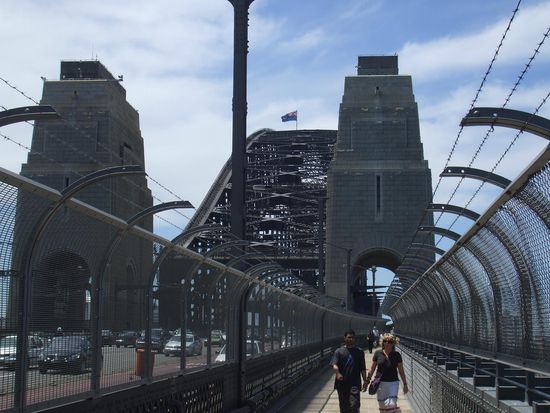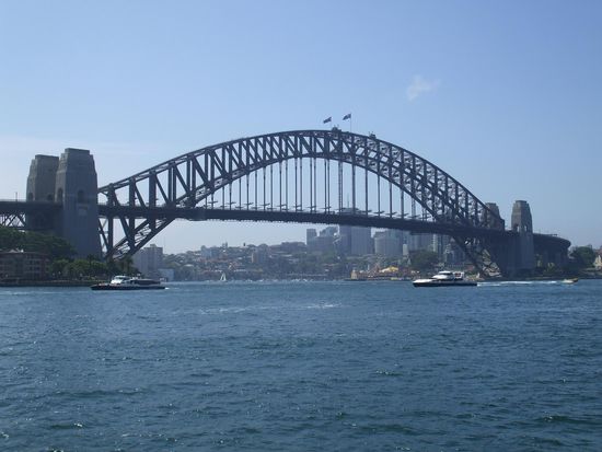 Das fuer mich beeindruckendste Bauwerk Sydneys ist eindeutig die Harbour Bridge. 1932 eroeffnet und mit 503m Laenge eine der imposantesten Bruecken ueberhaupt.