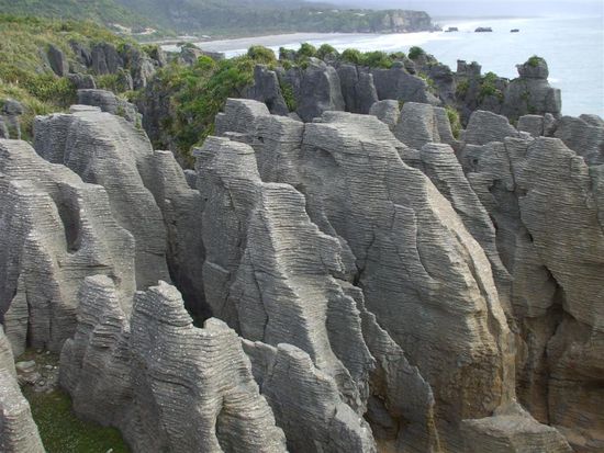 Eine kuriose Steinformation bilden die "Pancake Rocks", die wirklich aussehen, wie viele aufeinandergelegte Palatschinken.
