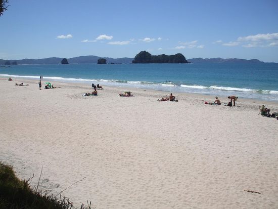 Meine letzten Tage in Neuseeland habe ich dann auf der Coromandel Halbinsel verbracht. Ueberall findet man tolle, einsame Straende, die einfach zum Baden einladen. Hier machen auch viele Neuseelaender Urlaub.