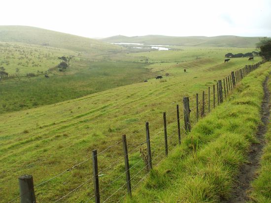 Auf dem Weg zu Cape Reinga, dem nordwestlichsten Punkt Neuseelands, wieder mal tolle und vor allem gruene Landschaften.