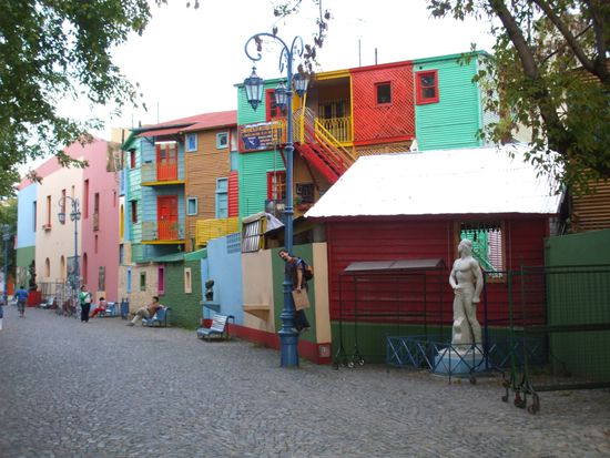 Die wohl bekannteste Strasse in Buenos Aires ist ¨La Caminita¨ in La Boca, mit den bunt angemalten Haeusern.