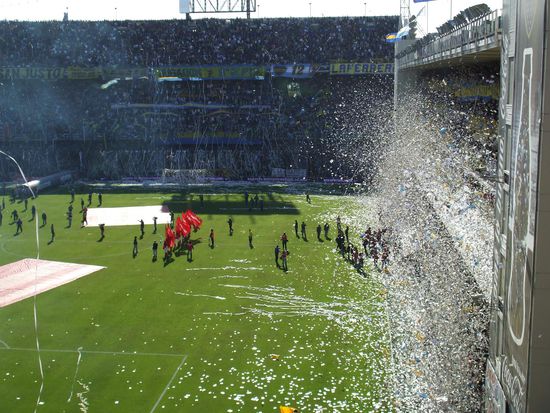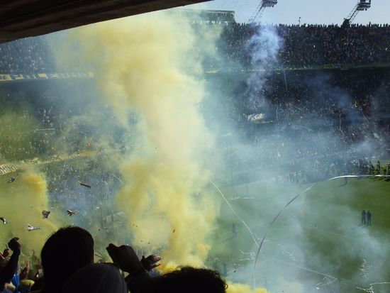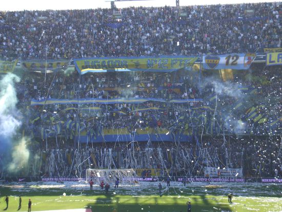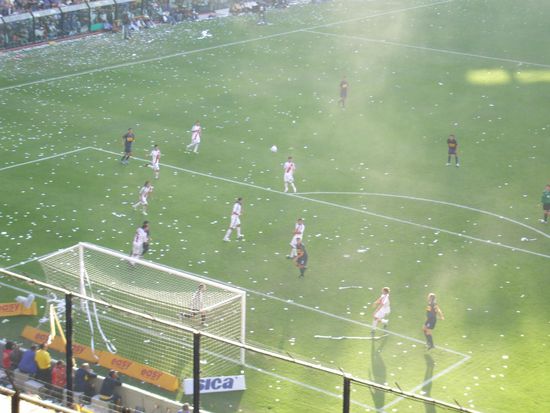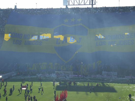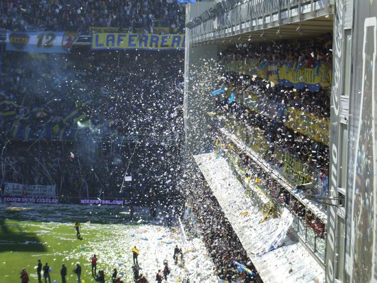 Achja, bei so viel Leidenschaft wurde dann auch noch Fussball gespielt. Das Spiel selbst war gut, aber nicht ueberragend und natuerlich hat Boca gewonnen. Beim 1:0 durch Battaglia ist das Stadion foermlich explodiert, den Jubel konnte man wohl in ganz Suedamerika hoeren