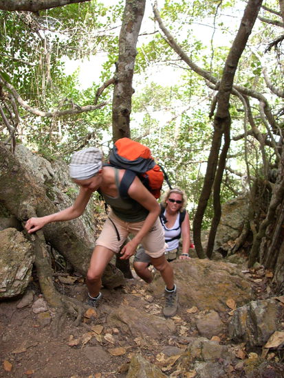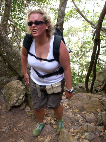 Hier ist klettern angesagt und Julia kann sich nur noch ein müdes Lächeln abringen.