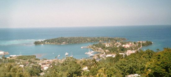 Ein Ausblick wie aus dem Bilderbuch. Obwohl das Restaurant geschlossen war, hielten wir uns eine halbe Stunde dort auf, da man von dort oben eine wunderbare Sicht über ganz Port Antonio und auf Monkey Island hat.