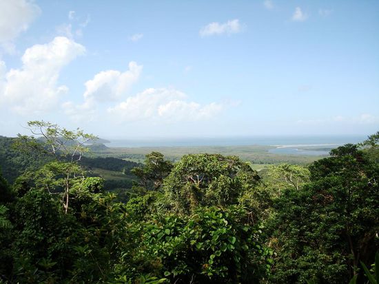 Am naechsten Tag fuhren wir die Strasse weiter bis ans Cape Tribulation. Die geteerte Strasse geht auch nur bis zum Cape Trib, dann fuehrt nur noch eine Schotterstrasse weiter hoch. Die Natur blieb dieselbe. Weiter gings durch den gigantischen Regenwald, vorbei an Lookouts und den langen, leeren Straenden.