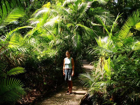 Nach dem kalten Bad wollten wir noch mehr von der schoenen Umgebung sehen und wir liefen auf dem Trek weiter in den Regenwald. Wir kamen uns vor wie in einem Botanischen Garten, nur das hier niergends ein Glasdach zu sehen war und alles viel groesser und eindruecklicher ist.