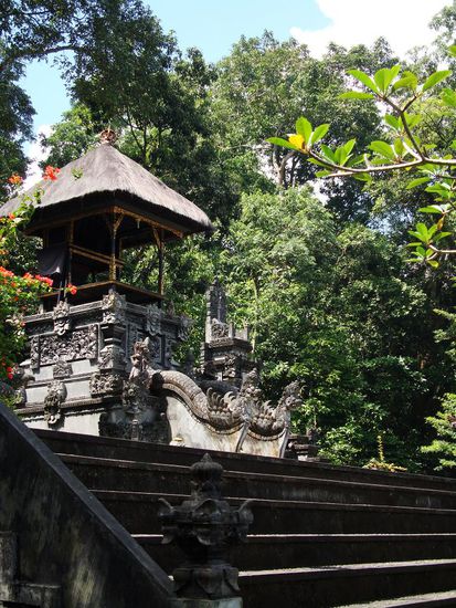 Nach einer Partie Schach, machten wir uns auf zum Monkey-Forest und dem Wasserfall. Der Weg bis zum Monkey-Forest ist gar nicht so einfach zu finden, aber die Einheimischen helfen gerne und einer begleitete uns sogar mit dem Motorbike bis zum Eingang des Waldes. Auf dem Weg zum Wald kamen wir noch in einen Platzregen und so starteten wir voellig durchnaesst den schoenen Trek durch den Wald.