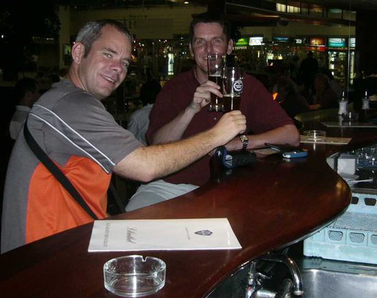 Danach habe ich dann noch meine Kollegen Markus R. (für Insider: Privatkunden SaarPfalz) getroffen. Er will um 21.30 nach Wien fliegen. Mein Flug geht um 21.15 Uhr. Also haben wir noch reichlich Zeit für ein Bier.