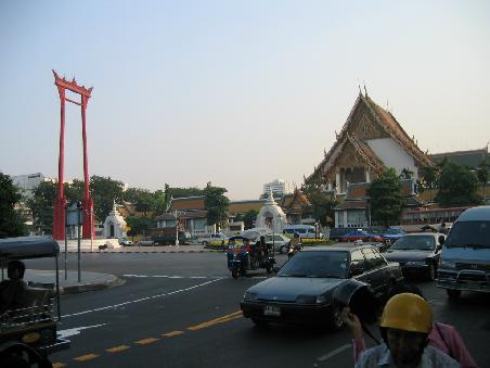 Der Weg zur Riesenschaukel ("gigant swing") war eigentlich ein schon oft gegangener. Nur ein Stück weiter als sonst. Diese Schaukel wurde aufgestellt anlässlich eines hinduistisch-brahmanischen Festes. Sie steht in mitten des Kreisverkehrs nördlich des "Wat Suthat". Es wurden auf dieser Schaukel Wettkämpfe ausgetragen, weil sie aber so lebensgefährlich verliefen, wurden sie unter König Rama VII im Jahr 1933 verboten.