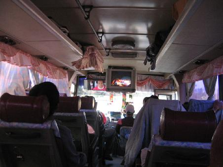 Die Busmannschaft dürften Fans Thailändischer Volks-Musik gewesen sein. Nichts dabei einzuwenden, doch die Lautstärke ließ Diskostimmung aufkommen. Ich war anscheinend der einzige den das störte, alle anderen ließen sich das gefallen. Meine Bitten, die Lautstärke zu reduzieren, dauerten oft nur bis zum nächsten Song oder Video an. Irgendwann resignierte ich dann!