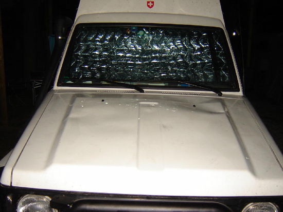 Es gibt sie auch im Süden! Vier Fanatiker besteigen die Motorhaube meines Leomobils und wollen ihren Samba ausführen.... Nicht auszudenken, wenn sie auf das Hubdach geklettert wären! Denn alle Zurufe nützen nichts und zusehen, wie mein Auto zertrampelt wird, das lasse ich nicht zu!