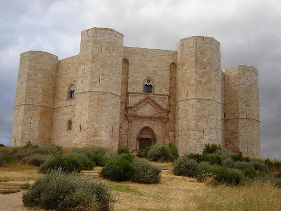 Achteckig sind der Grundriss des Kastells, die acht Türme und der Innenhof - und jeweils acht trapezförmige Räume liegen auf einem Stockwerk. Das Eingangsportal wiederspiegelt bereits den geistigen Horizont Friedrichs II: Pilaster, Architrav und Giebel stammen aus der Antike, die Kapitelle der zeitgenössischen Zisterziensergotik, die Einfassung oben und die prunkvolle Ausführung dem Islam.