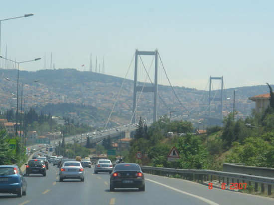 So eine grosse Brücke kostet natürlich auch eine Kleinigkeit. Wir wissen aber nicht wirklich wieviel, fuhren wir doch bei der Zahlstelle in die Bahn für registrierte Fahrzeuge: bis wir realisierten, dass wir hier weder mit Karte noch Bar bezahlen konnten, reihten sich bereits 10 Autos hinter uns auf. Bevor wir überhaupt damit beginnen konnten, die Kolonne retour zu bewegen erschien bereits ein anderer Brückenpassant und half uns mit seiner Karte so wie einem freundlichen "Welcome to Turkey" spontan aus... Typisch für die Türken, wie wir später noch x mal erleben durften.