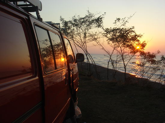 In Ünye machen wir 2 Tage Reiseferien und geniessen das warme Wasser, den Strand und die Türken: wir sind die absolute Attraktion hier, nicht weil wir so weit reisen, sondern weil sich kaum Touristen an diese Küste "verirren". Ständig bringen unsere Campingplatzkollegen irgendwelche leckere Speisen und Spezialitäten. Schockiert sind wir darüber, dass hier niemand auch nur ein Wort Englisch spricht... mit unseren mittlerweilen erlenten türkischen Wörtern sowie viel Gestik hindert uns nix am Austausch.. wir haben ja Zeit!!