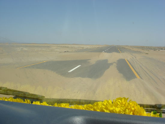 Damit die ganze Fahrt auch wirklich zum Erlebnis wird gab's in den "neueren Bereichen" wenigstens kleine Sanddünen auf den Strassen, um die Fahrt spannend zu gestalten..