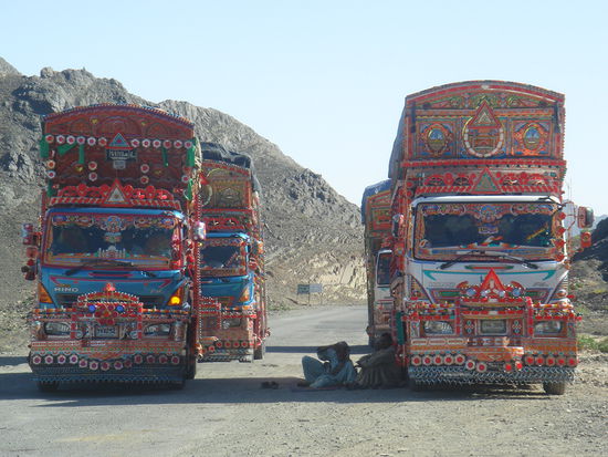 ahja.. und das Ueberholen entpuppte sich zusätzlich mit spezieller Tücke... in Pakistan wird dank den Engländern links gefahren... in unserem Schweizerauto sitzt der Fahrer somit auf der falschen Seite um nach vorne zu gucken ob die Strasse frei ist.... ohne Beifahrer wär dies ein echter Graus.