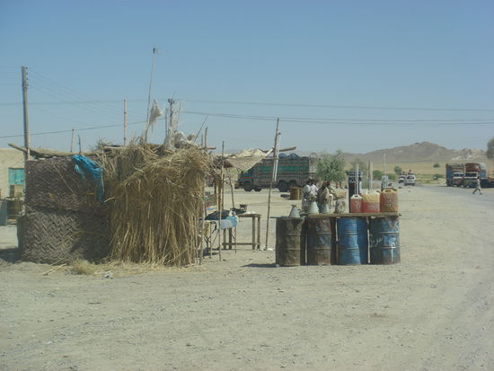 unterwegs gab's manchaml auch kleine Tankstellen, die geschmuggeltes (anscheinend grosszügig verdünntes) iranisches Benzin verkaufen.