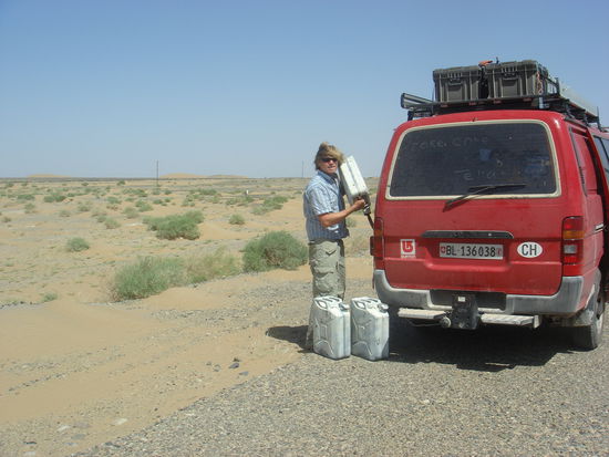 unser Bus war dankbar, dass wir ihn mit selbstexportiertem, purem Originalfusel versorgen konnten und liess uns deshalb auch in der heissen Wüste (gegen 50°C) nie im Stich...
