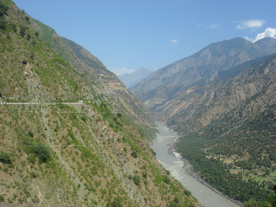 Zu Begin schängelt sich die Strasse - welche von Islamabad bis zur Chinesischen Grenze eine Länge von über 800 km aufweist - gemächlich entlang grüner Täler... die langsam immer steiler werden.