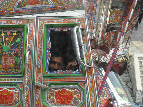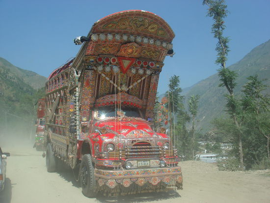 ..der Verkehr besteht hauptsächlich aus wunderbar verzierten Trucks, die sich in Schrittempo gegen Norden wälzen. Faszinierend für uns Schweizer, welche Kultur in Pakistan aus dem "Lastwagen-Pimpen" entstanden ist