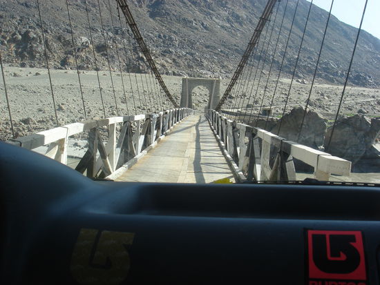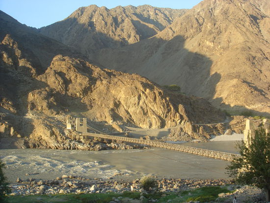 ..eben auf der andren Flusseite.. der Indus ist in diesem Gebiet ein mächtiger Strom und die Brückeningenieure Pakistans haben komplett andere Konzepte als wir sie aus der Schweiz kennen.