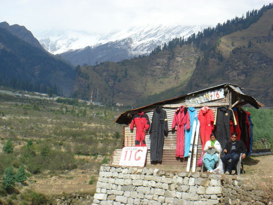 In Manali am Fusse des Himalayas klaeren wir die zur dieser Jahreszeit noch moeglichen Routen ab (eigentlich waeren wir gerne nach Leh im Ladakh gefahren)...ebenfalls ein Ding der Fastunmoeglichkeit! Jeder erzaehlt was anderes... sodass wir uns mit viel Food eindecken und s einfach mal versuchen...wir entscheiden uns aber fuer das Spiti-Valley anstelle von Ladakh...denn hier gibt's nur auf der einen Talseite einen megahohen Pass..(das heisst, wenn die Schneefaelle starten, sollten wir mit dem Auto das Tal noch verlassen koennen, was in Ladakh nicht der Fall waere. Und bei aller Bergliebe - grad nen ganzen Winter in Ladakh...ohne Snowboard...nix fuer uns)
