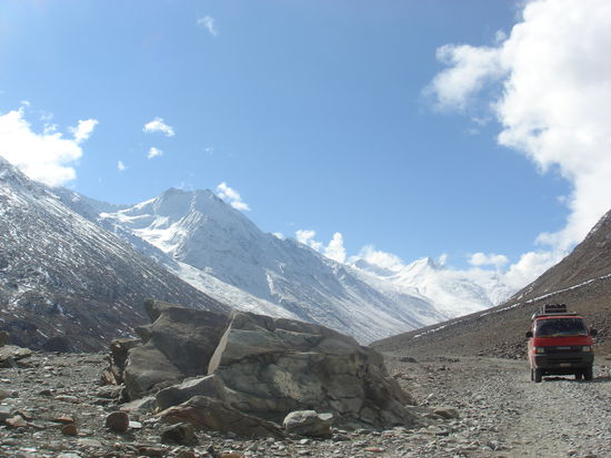 Echt beeindruckende Bergriesen (so um die 7000 Meter hoch) saeumen den Weg. Waehrend den Naechten wirds aber bereits deutlich unter Null... wir schaetzen ein mal mehr unsere flauschigwarmen Schlafsaecke...wer hat die wohl erfunden??