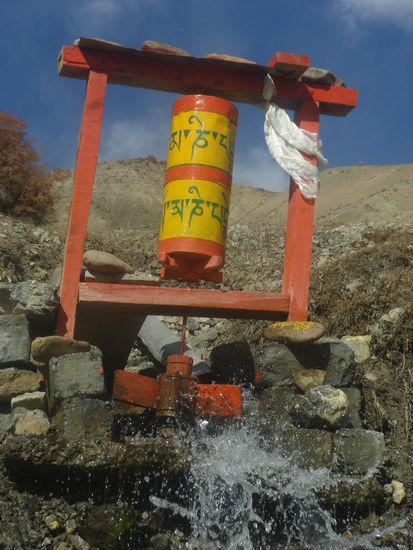 Bei soviel Meditation scheinen den Moenchen noch clevere Ideen zu kommen... Gebetsmuehle auf Hochtouren..