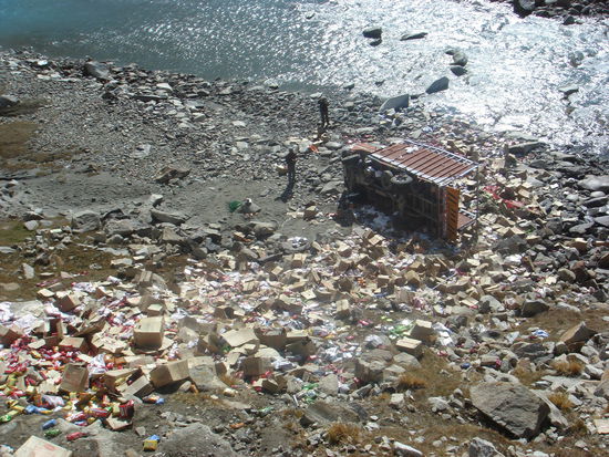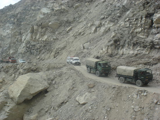 Wir standen dann 6 Stunden blockiert im Tal (ja in jenem wo die Steine runter breschen)...es dauerte einfach megalange, bis sich endlich einer bewegt hat und frischen Diesel organisierte...da nuetzt auch das erstaunlich rasch vor Ort erscheinende indische Militaer nix...