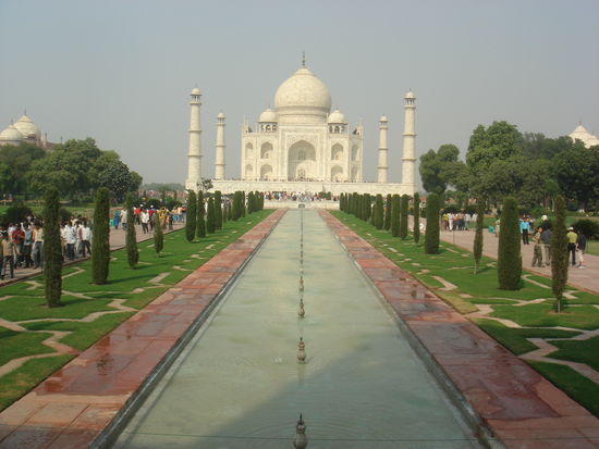 Der Taj ist übrigens eines der grössten Gräber der Welt und und wurde von 20'000 Arbeitern in 12 Jahren errichtet. Der Shah Jahan liess diesen für seine beim gebären des 14 Kindes verstorbene Lieblingsfrau errichten (er hatte immerhin 72 Frauen).