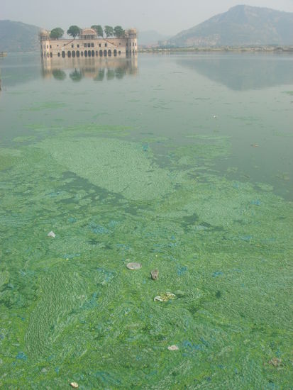 ...the Swimming Palace: Jal Mahal. Wir sind froh, müssen wir nicht schwimmen in dieser Brühe...
