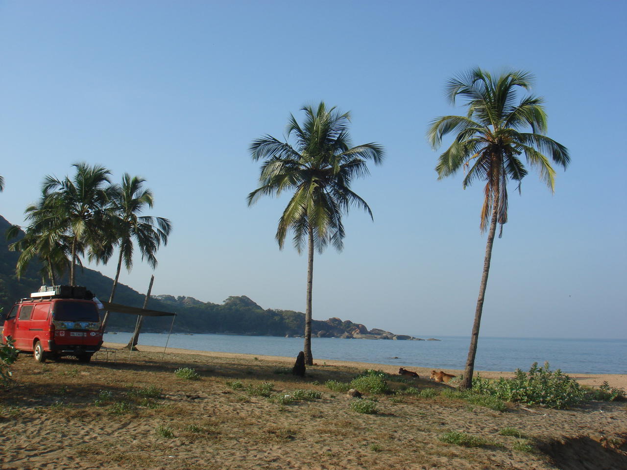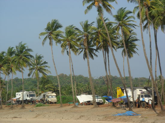 Wenn auch an anderen Straenden selbst hier in Goa schon echter Camper-Andrang herrscht. Viele stehen hier uebrigens den ganzen Winter.