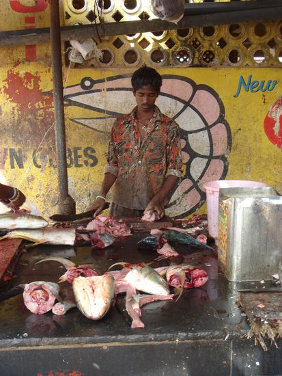 Szene vom nahen Fischmarkt oder besser gesagt vom Fischschlachter...