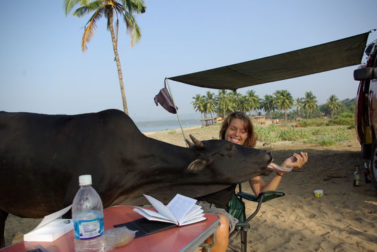 Bei unserem ersten Stop in Little Vagator genossen wir's mit Gleichgesinnten Reiseerlebnisse auszutauschen, sowie mit Bike und Roller einsame Straende zu erforschen.