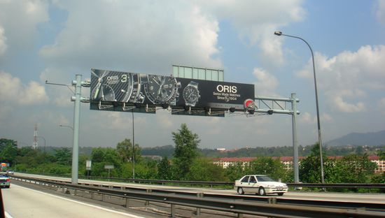 Auf dem Highway staunen wir nicht schlecht ueber die Markenpraesenz der Hoelsteiner Weltuhrenmarke ORIS. Fuer alle nicht Insider: Hoelstein zaehlt nur gerade knapp 2'000 Einwohner, liegt irgendwo weit hinten im Kanton Baselland und ist der Jugendwohnort von Lucia.