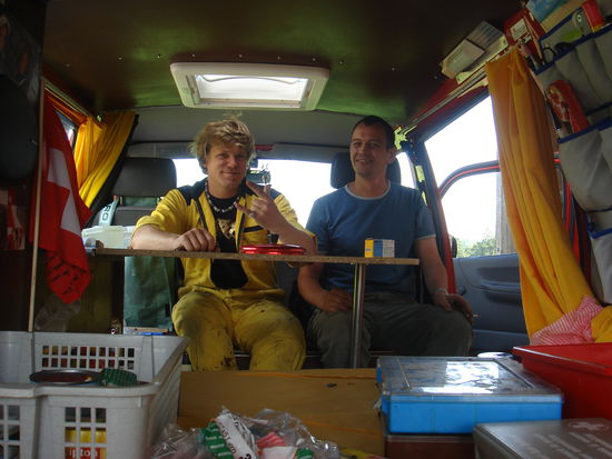 ja und unseren einmaligen Benzinträger Marke Black Flys möchte ich hier auch ganz speziell verdanken!! Figa echt Klasse... und für den Fall der wohl dümmsten Fälle dass unser Buss geklaut würde wissen wir alle: der Auslöser war der Benzinträger von Figa... Bild im nächsten Eintrag