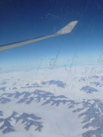 Der Weiterflug nach Vancouver verlief schneller als gedacht, da jeder vor sich einen kleinen Bildschirm mit grosser Film & Musikauswahl hatte.Ich konnte sogar wunderschoene Bilder von Groenland machen mit seinen unendlichen weiten, weissen schneebedeckten Bergen.