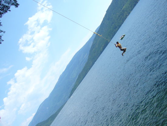 Dass ich ein Glueckskind bin, konnte ich mal wieder unter Beweis stellen :Ich mit noch 6 anderen ganz spontan von ein paar Kanadiern gefragt wurde, ob wir nicht Lust haetten, auf deren Speedboat mitzufahren und Wake boarden auszuprobieren (also quasi wie Wasserski,nur mit einem Brett, auf dem man quer mit beiden Fuessen steht). Ich habe es sogar geschafft, mich einmal komplett aufzurichten und ein paar Meter zu fahren.Ich weiss,klingt jetzt nicht soo spektakulaer, aber das sieht leichter aus als es ist, glaubt mir. Da ist sowas fuer den Anfang doch gar nicht mal schlecht.