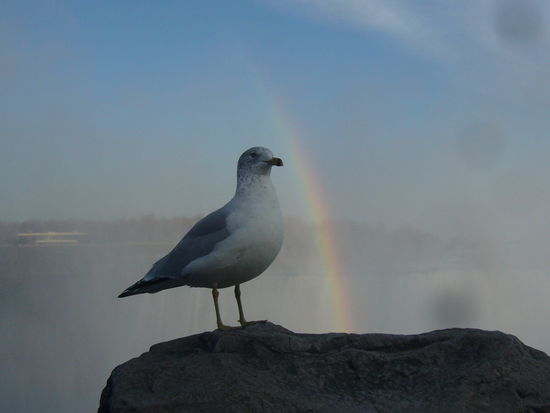 Das Oertchen Niagara ist schlichtweg einfach haesslich: nur aus Hotels und Casinos und Touri-Einkaufslaeden bestehend mit viel ueberfluessigem Schnick-Schnack und Glitzer-Lichtern.Daher wurde auch keine Zeit verschwendet sondern ich bin sofort zur Ausgucks-Plattform gegangen und habe mir von dort das Naturwunder angeschaut.