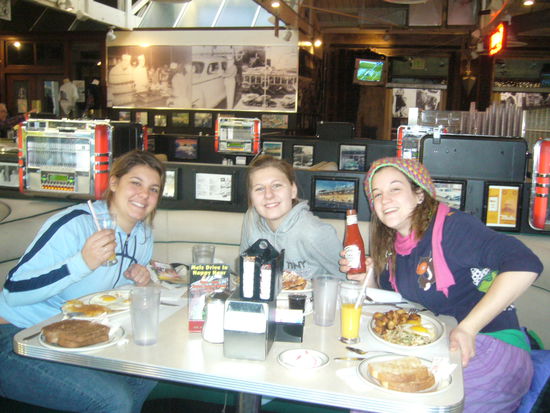 Trotzdem,nach endloser HerumFahrerei machten wir das Beste aus der Situation und gingen erstmal fruehstuecken, was definitiv eine super-gute Entscheidung war.Das Lokal war im 50er Jahre Stil aufgebaut, ahtte sogar noch richtige Juke-Boxen und die Atmosphaere dort war toll.Und was gehoert zu einem typisch amerikanischen Frueshtuck alles dazu? natuerlich Pancakes,O-Saft, Hashbrowns (Reibekuchen),Egg, Bacon, Toast, Coffee...enjoy!