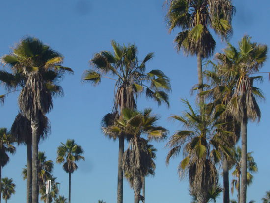 Nach einem laaanage Nickerchen im Hostel beschlossen wir mit Bus & Bahn nach Venice Beach zu fahren, da wir uns hatten sagen lassen, dass dort v.a.a sonntags viel zu sehen sei.Wie sehr L.A. von Hispanics dominiert wird,fiel uns dann wieder im Bus auf: Adriane war das einzige (natur-)Blonde Maedchen im Bus.Noch dazu unterhielten wir uns auf Franzoesich, was man hier wohl nicht so oft hoert,und so dauerte es gar nicht lange bis wir von 3 Herren umkreist waren(u.a. einem christlich.Fundamentalisten mit passender Kruzifix-Krawatte, der uns anbot in seinem Haus unterzukommen...)und gefraht wurden, wo wir herkaemen,wie es uns gefiele etc.