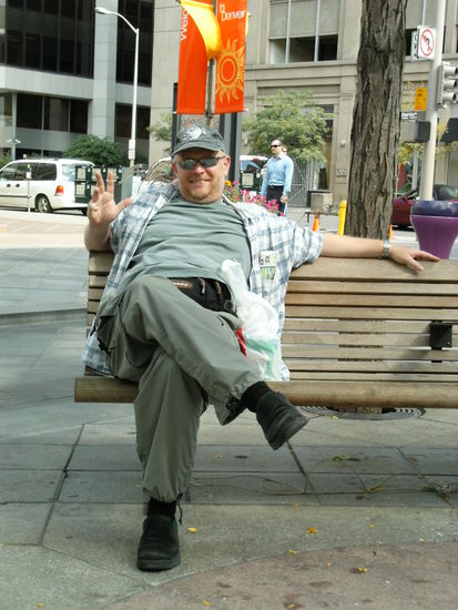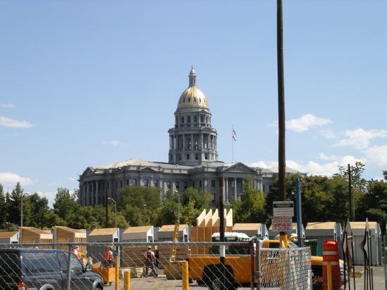 Jan und Ken müssen heute beide arbeiten. So stehen wir gegen 8.00 Uhr auf und machen uns Frühstück. Die Fahrräder von Jan und Ken sind Rennräder, mit denen wir nicht fahren können, so gehen wir zu Fuß in die Stadt am Flüsschen entlang. Wir trinken einen Kaffee und O-Saft und nehmen gegen 11.00 Uhr den Express-Bus nach Denver. Die Fahrt dauert ca. 45 Minuten. An der Endstation steigen wir aus und folgen der 16th Straße, eine große Einkaufsstraße. Wir nehmen Lunch im Marloney's Restaurant (Caesar's Salad und Pommes) und laufen dann bis zum Capitol und zurück. Die Hochhäuser sind beeindruckend und es ist spannend, die verschiedenen Leute zu beobachten. Wir besuchen Nike-Town, aber ansonsten sind die Geschäfte nicht so toll.