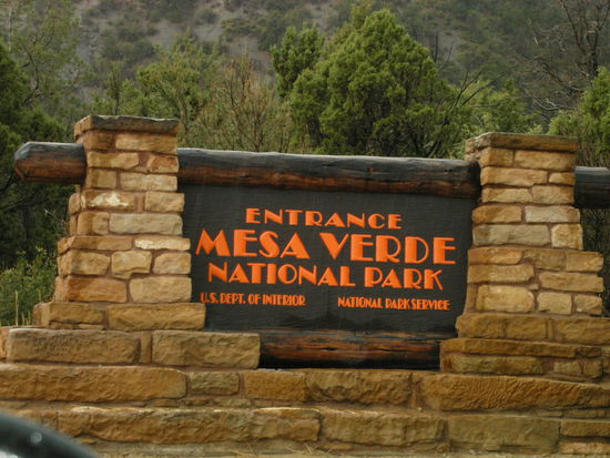 Es gießt in Strömen und man kann stellenweise keine 10 Meter weit sehen. Ich bin froh, dass Thomas fährt.... Von der Landschaft bekommt man wegen des Regens nicht viel mit. Es geht auf die 191 Richtung Süden. Dann nehmen wir die 666 Richtung Cortez. In Cortez, das hauptsächlich aus Motels besteht, beschließen wir noch kein Zimmer zu suchen, sondern in Richtung Durango weiter zu fahren. Als der Eingang zum Mesa Verde N.P. auftaucht, biegen wir kurzentschlossen ein. Vom Eingang bis zum Visitor Center sind es 15 Meilen. In steilen Kurven geht es den Berg hoch. Von der Landschaft sieht man wegen des ströhmenden Regens gar nichts, daher lassen wir die View Points aus. Offensichtlich hat es auch hier gebrannt. Überall stehen verbrannte Bäume, die aber schon wieder nachwachsen. Das Visitor Center ist ziemlich blöd. Sie haben noch nicht einmal Postkarten von den Pueblos....