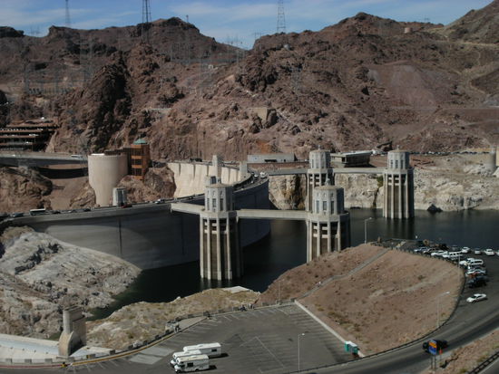 Wir schlafen aus und stehen um 8.30 Uhr auf. Im Albertson's kaufen wir unser Frühstück und Mittagessen ein und fahren los auf der I 40 West nach Las Vegas. Uns verlangt nach großer Stadt und Outlet-Malls! Nach der Abzweigung 93 Nord machen wir einen kurzen Tankstop. An der Grenze von Arizona nach Nevada liegt der Lake Mead. Wir überqueren den Hoover Damm. Man sieht genau an den ausgewaschenen Felswänden, dass das Wasser schon mal höher stand. Es ist jede Menge los hier, wir wollen den Damm aber nicht besichtigen; das haben wir vor ein paar Jahren schon gemacht.