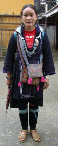 Ich lerne Ker kennen, Schwarzes H'Mong-Mädchen, wunderschöne Tracht wie alle hier in Sapa.